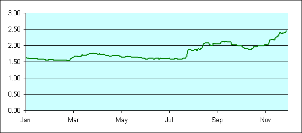 For what it’-s worth, bettors at Intrade also seem to believe that the risk of a U.S. recession during 2008 has crept up since mid-October.